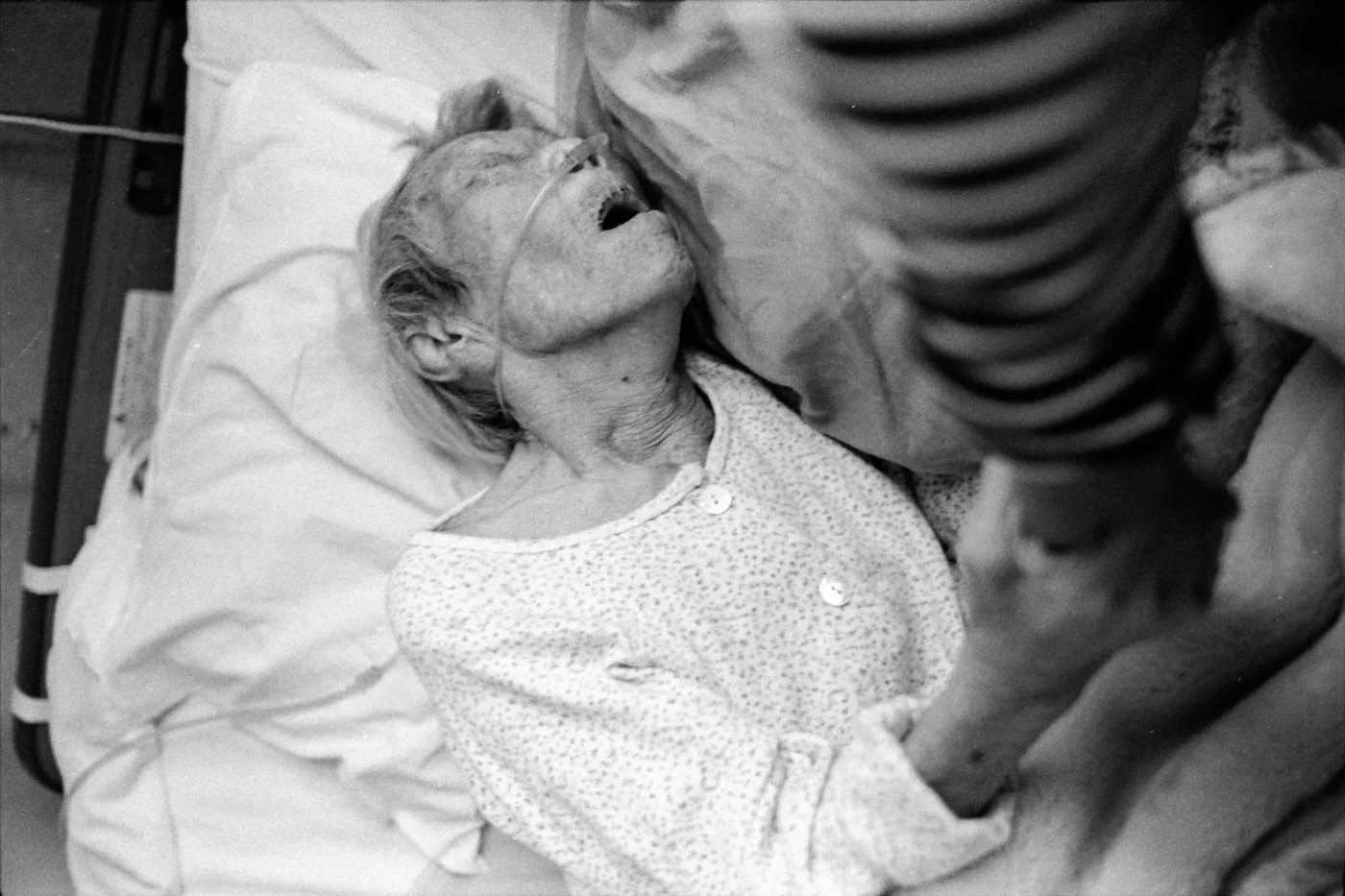 My grandfather became sick and started staying in the hospital when I was a student. On one of his last days, I visited him and found him tied to the bed in a sterilization room after he had tried to remove a tube attached to his throat. He was still trying to move and staring at us, even though he could no longer make a sound. “He is not the grandpa you know; maybe you shouldn’t see him anymore.” Tsuyajyo told me.